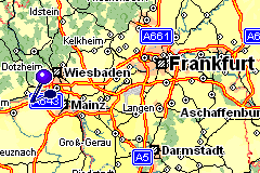 Von Frankfurt a. Main aus geht es problemlos über Frankfurt Airport > Rüsselsheim > Mainz > Heidesheim am Rhein A60, Exit 17