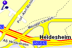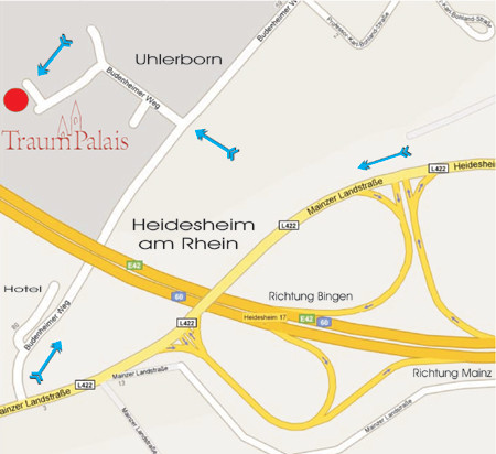 Direkte Anfahrt über die Autobahn A60 zwischen Mainz und Ingelheim / Bingen.